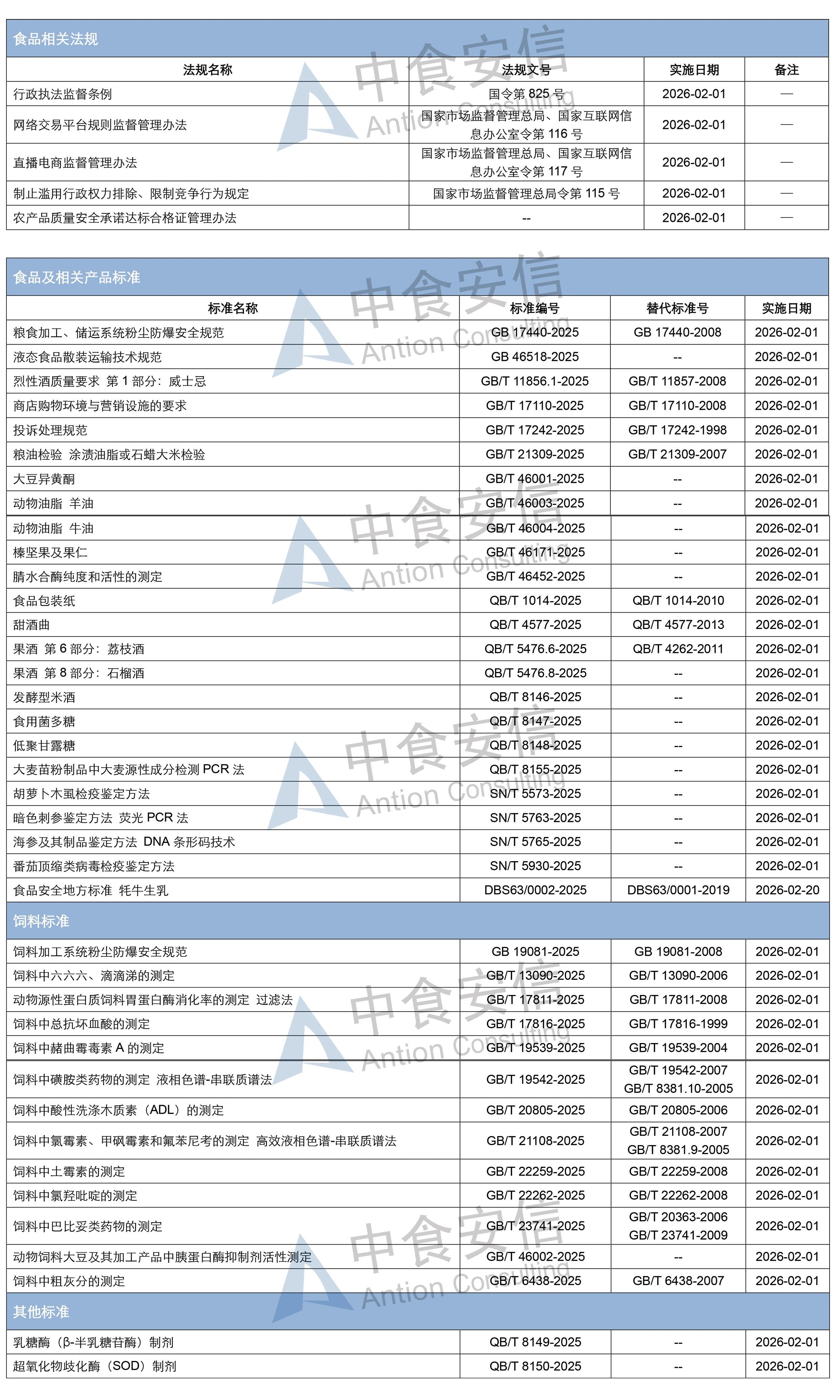 2026年2月1日开始,《网络交易平台规则监督管理办法》《直播电商监督管理办法》以及多项与食品相关的法规标准即将正式实施。