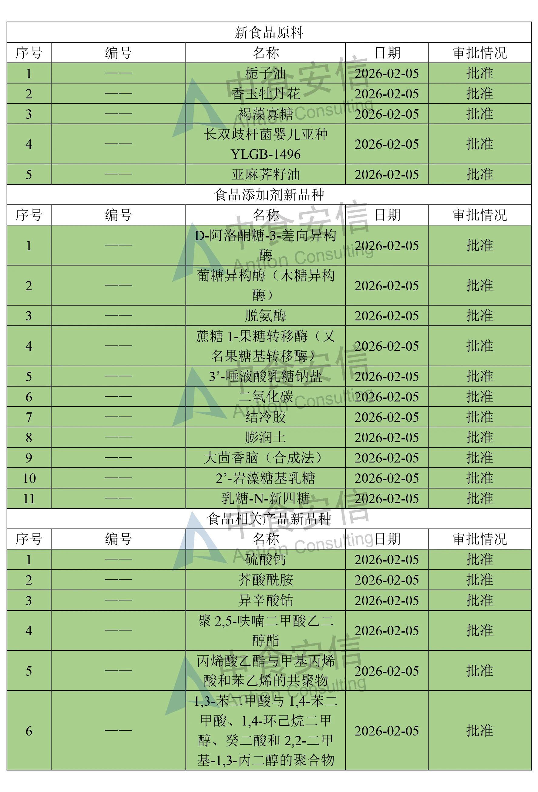中食安信根据国家卫生健康委员会发布的信息整理了02月02日至02月08日“三新食品”的申报审批情况。具体情况如下: