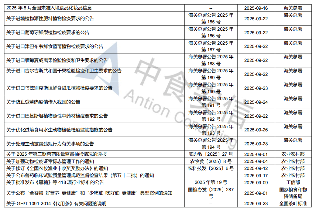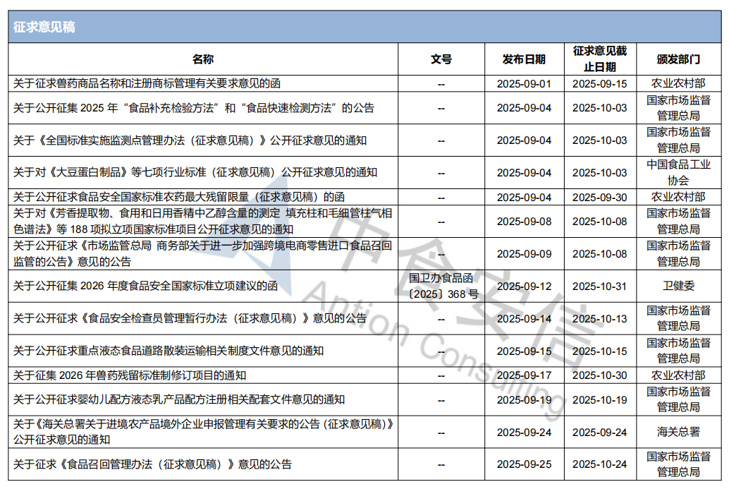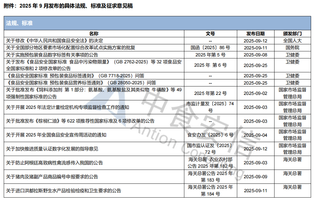 中食安信希望通过对九月法规回顾以及重点法规的解读,对企业及行业人员把握监管变化趋势、合规宣传产品有所帮助。中食安信可提供标准法规咨询、行业舆情监控、食品标签审核等咨询服务,,有任何问题欢迎随时联系我们(010-51301566)。