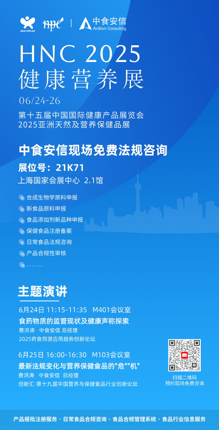 中食安信作为本次活动的主要承办单位,将在HNC展会现场设立展位,为大家提供免费的食品法规咨询服务。