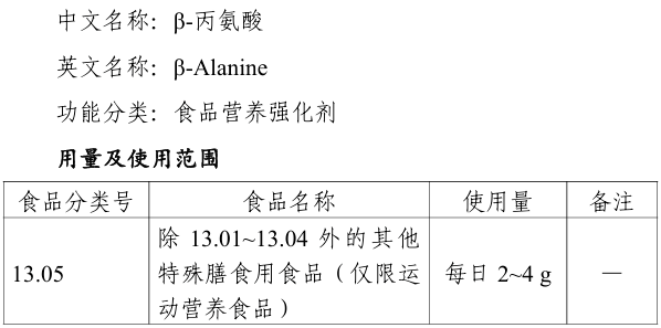 PART.1 β-丙氨酸 本次发布公告的β-丙氨酸作为食品营养强化剂新品种,用于除13.01~13.04外的其他特殊膳食用食品(仅限运动营养食品)(食品类别13.05)。该物质作为食品营养强化剂,用于强化食品中β-丙氨酸的含量。经安全性评估,β-丙氨酸在所申报食品类别中可以安全使用,其质量规格按照公告的相关要求执行。美国食品药品管理局、欧盟委员会等允许β-丙氨酸作为膳食补充剂用于食品。 PART.2 运动营养新原料 β-丙氨酸是一种天然存在的β型氨基酸,能够帮助提升运动表现,延缓肌肉疲劳,是全球五大运动原料之一。 在国际运动营养学会(ISSN)认证的补剂有效性矩阵中,β-丙氨酸是公认的“A类补剂”——这意味着其提升运动表现的功效拥有最强等级的科学证据支持。它并非营销噱头,而是经过无数临床试验验证的、能够直接量化提升运动员表现的合成生物学成果。 β-丙氨酸是合成肌肽(carnosine)的限速前体。肌肽在骨骼肌内能直接缓冲 H⁺,降低酸中毒对肌纤维的抑制,从而延迟疲劳发生(Perim, Pedro, et al. 2019)。 图1:肌肉肌肽的代谢(Perim, Pedro, et al. 2019). 根据国际运动营养学会(ISSN)2015年发布的权威共识声明,每日补充4-6克β-丙氨酸,持续至少2-4周,可安全有效且显著的地提升肌肉肌肽水平,是改善高强度运动表现的A级推荐策略(Trexler et al., 2015)。