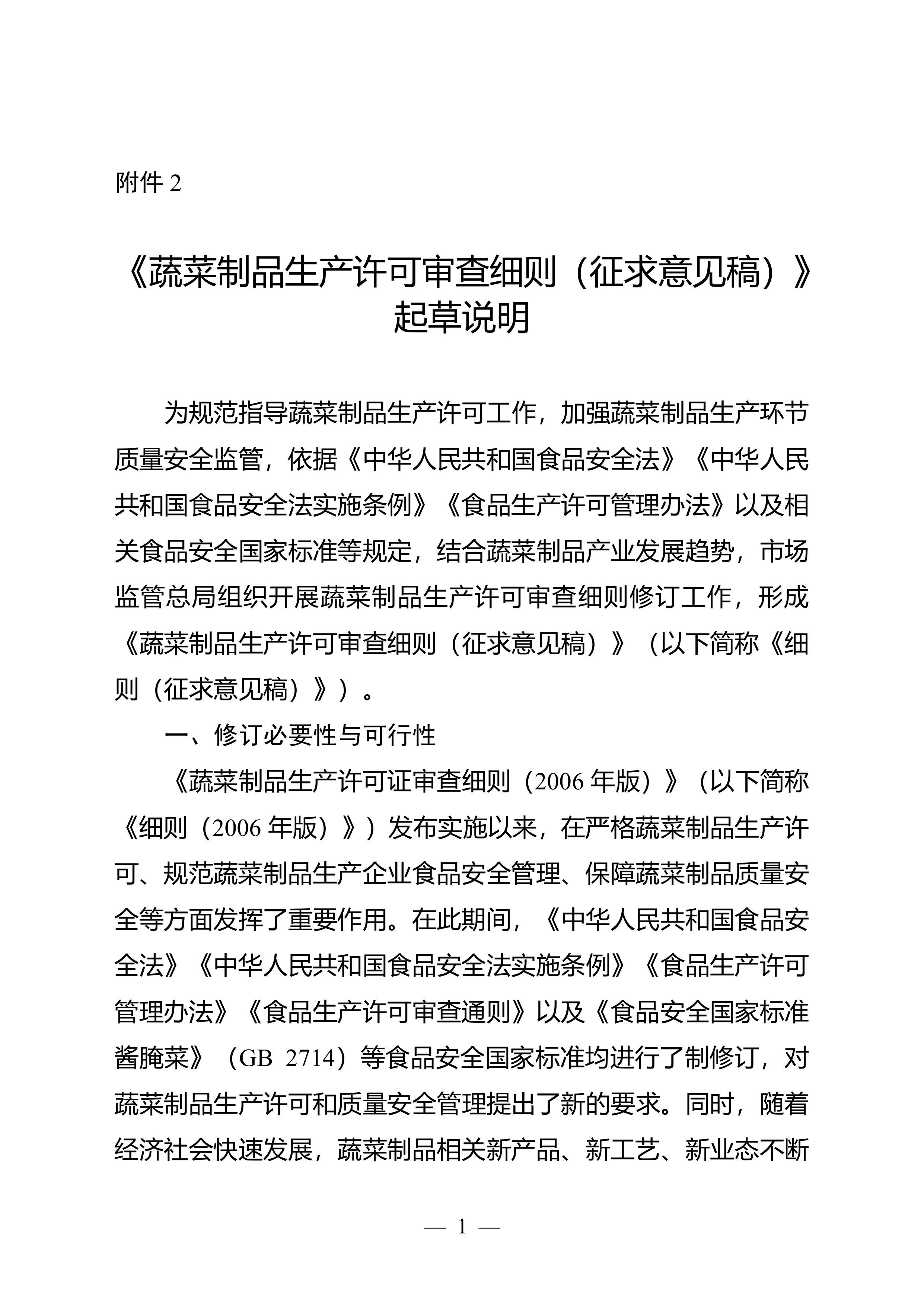 为规范指导蔬菜制品生产许可工作,加强蔬菜制品生产环节质量安全监管,依据食品安全法律、行政法规、规章、食品安全国家标准等规定,市场监管总局组织修订形成《蔬菜制品生产许可审查细则(征求意见稿)》,近日向社会公开征求意见。