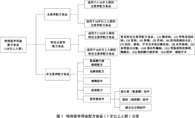 根据不同临床需求和适用人群分为3类,即全营养配方食品、特定全营养配方食品和非全营养配方食品,具体见图1。