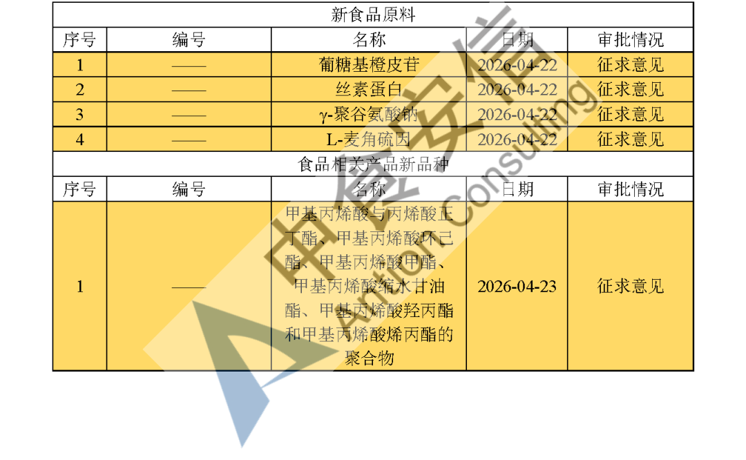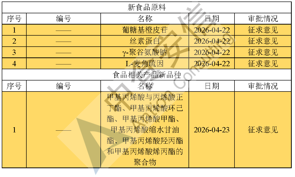 中食安信根据国家卫生健康委员会发布的信息整理了04月20日至04月26日“三新食品”的申报审批情况。具体情况如下: