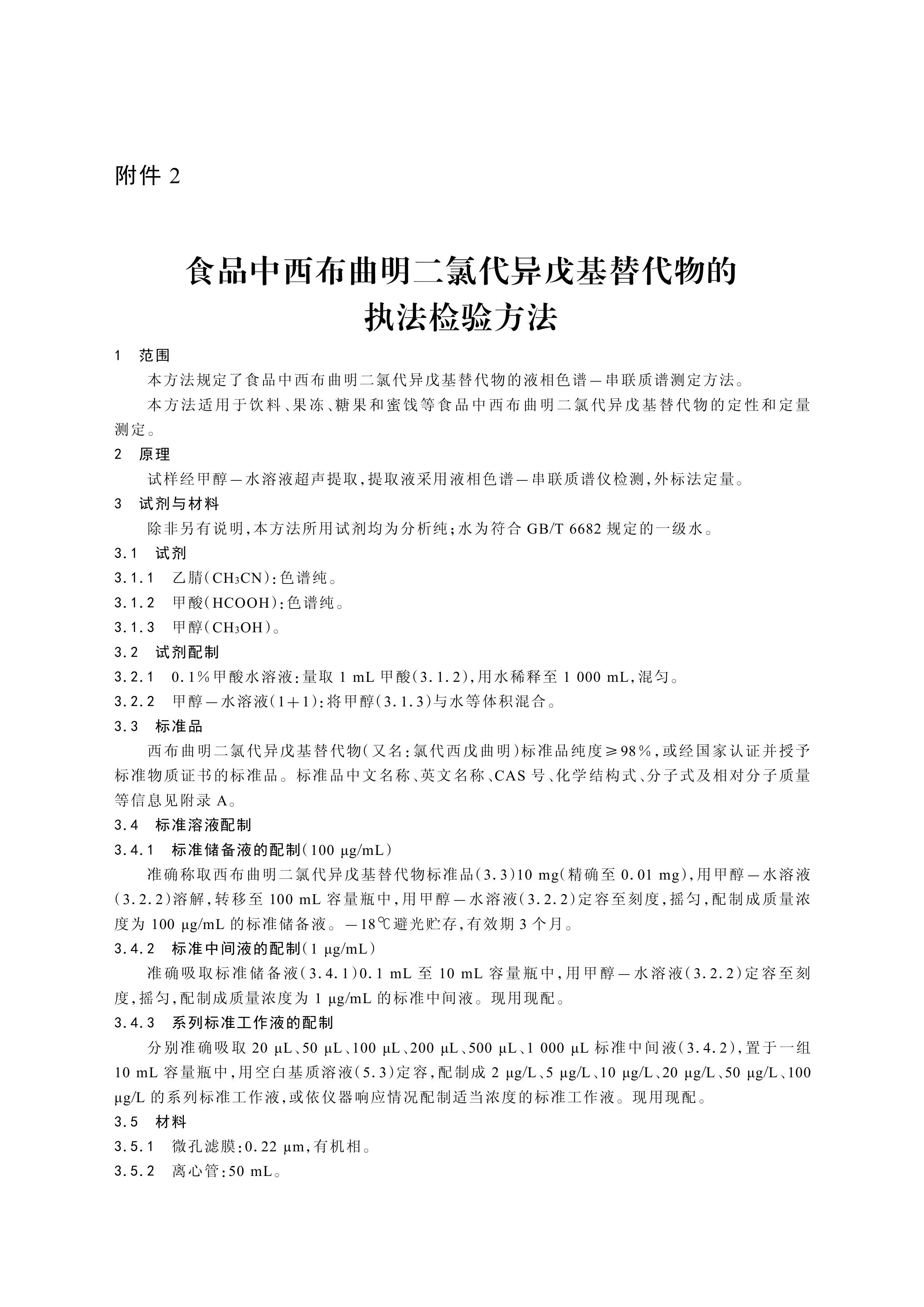 2.食品中西布曲明二氯代异戊基替代物的执法检验方法