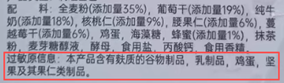 ①配料:小麦粉、白砂糖、榛仁、可可脂、花生、麦芽糊精、脱脂奶粉、明胶