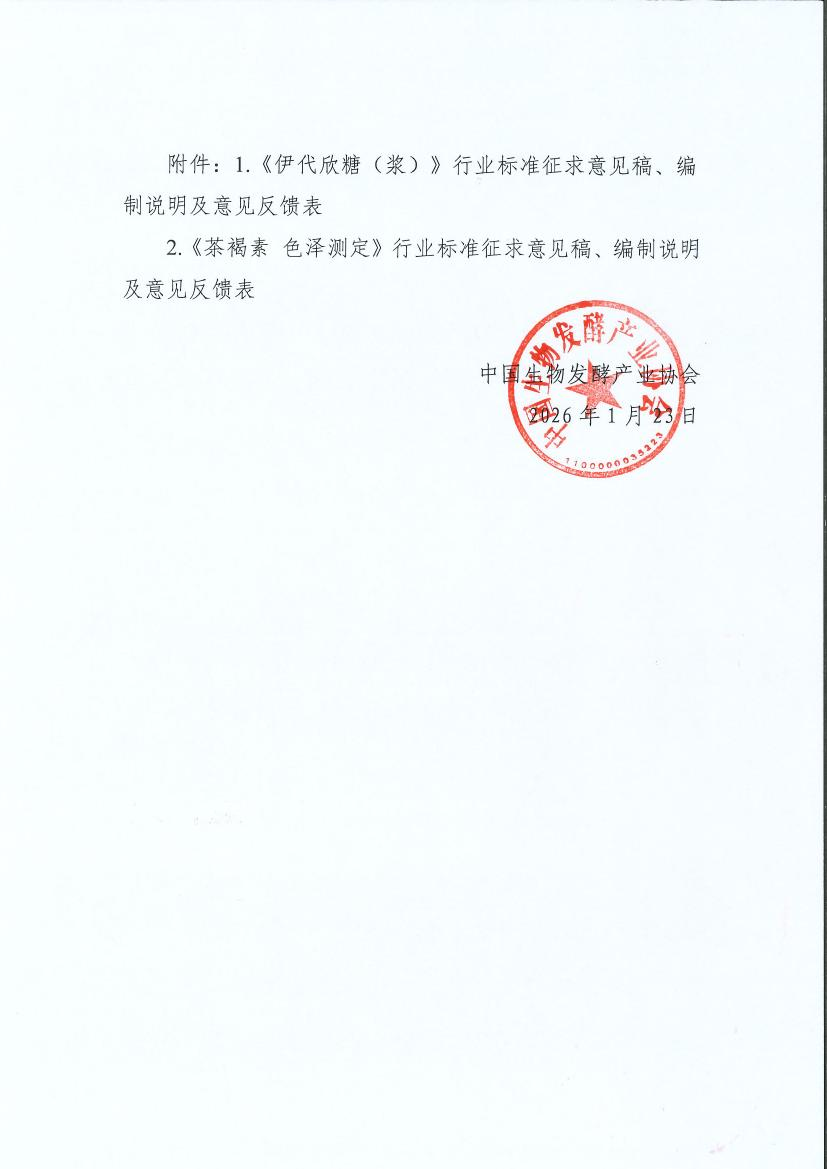 【权威】关于《伊代欣糖(浆)》、《茶褐素 色泽测定》两项行业标准公开征求意见的通知