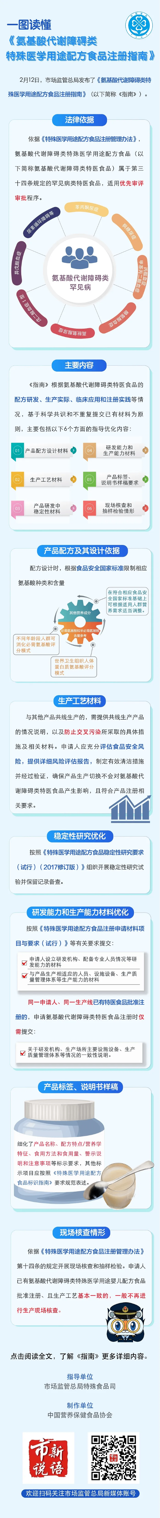根据《特殊医学用途配方食品注册管理办法》及有关规定,市场监管总局制定了《氨基酸代谢障碍类特殊医学用途配方食品注册指南》,现予公告。文章来源:antion