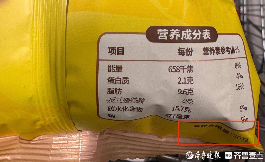 零食包装的热量标注暗藏“猫腻”?近日,济南市民刘女士反映,她购买的一罐薯片,包装上的营养表显示热量为688千焦,实际仅是30克的热量,而这罐薯片的净含量为90克,算下来一罐热量总共为2064千焦。这让她不禁抱怨“吃零食还要做热量计算题”,吐槽之余,刘女士也质疑商家此举是否在热量标注上刻意“耍小心机”,让消费者误判产品真实热量。
