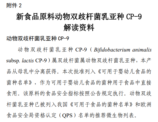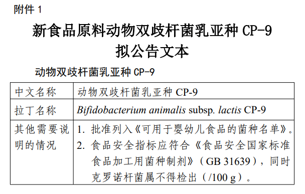 新食品原料动物双歧杆菌乳亚种CP-9征求意见内容及相关解读材料,请自行下载阅读。如有意见或建议,请反馈至xspyl@cfsa.net.cn,并在邮件主题中注明“新食品原料意见反馈”。文章来源:antion.net