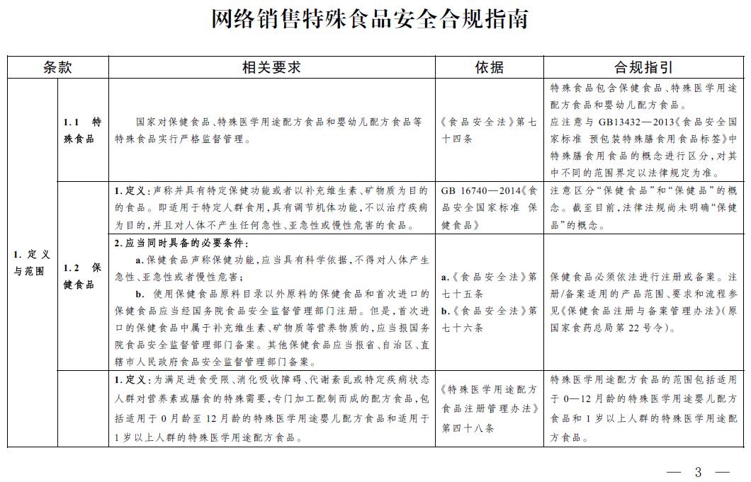 近日,国家市场监督管理总局印发《网络销售特殊食品合规指南》(以下简称《指南》)。