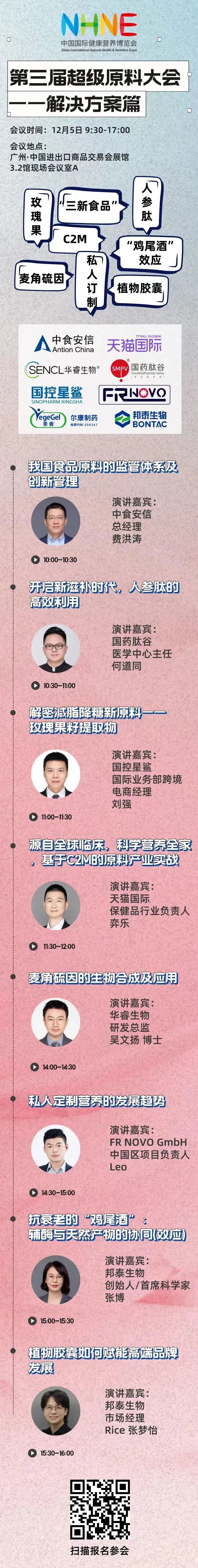 中国国际健康营养博览会(NHNE)是亚洲健康营养与保健食品行业旗舰展会,被誉为行业发展的“风向标”。 “NHNE2023中国国际健康营养博览会” 将于12月5-7日在广州-中国进出口商品交易会展馆举办。本次展会规模超过40,000平方米,展示内容涵盖保健食品、健康食品、功能食品、营养滋补品、特殊医学用途配方食品等十余个专业领域,展会同期举办30余场高质量的会议论坛和超精彩的现场活动。 中食安信作为本次大会的官方合作伙伴,将在大会现场进行多场法规活动。 食品法规咨询中心