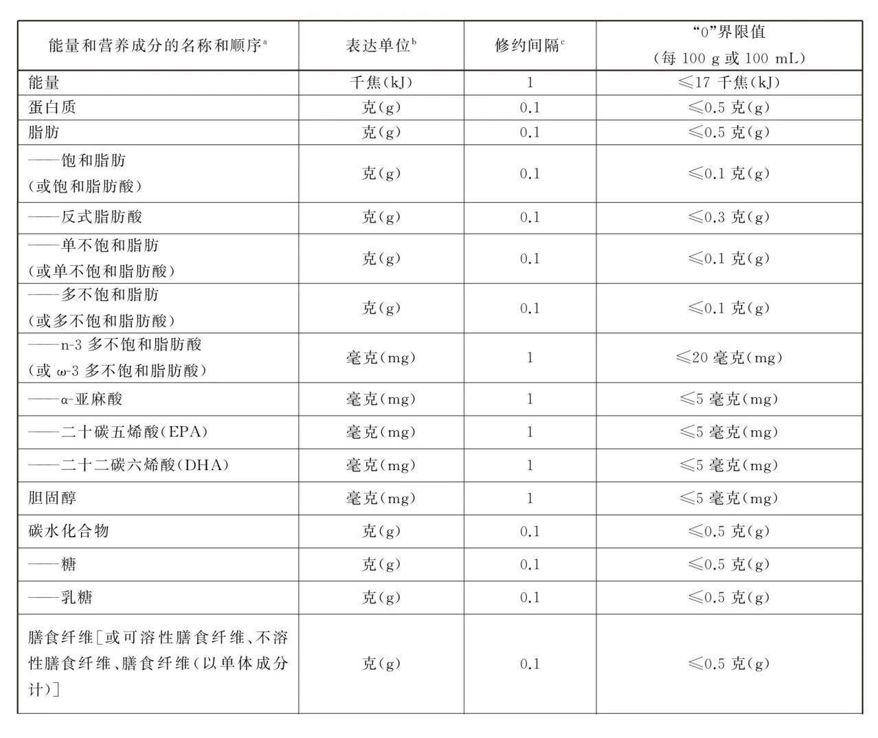 根据《食品安全国家标准 预包装食品营养标签通则》(GB 28050-2025)规定,标签中声称“无或不含糖”,食品中的糖含量要≤0.5 g/100 g(固体)或 100 mL(液体);声称“无能量或无卡、无千卡或无卡路里”,食品中的能量要≤17 kJ /100g(固体)或100mL(液体),并且脂肪供能比≤50%。