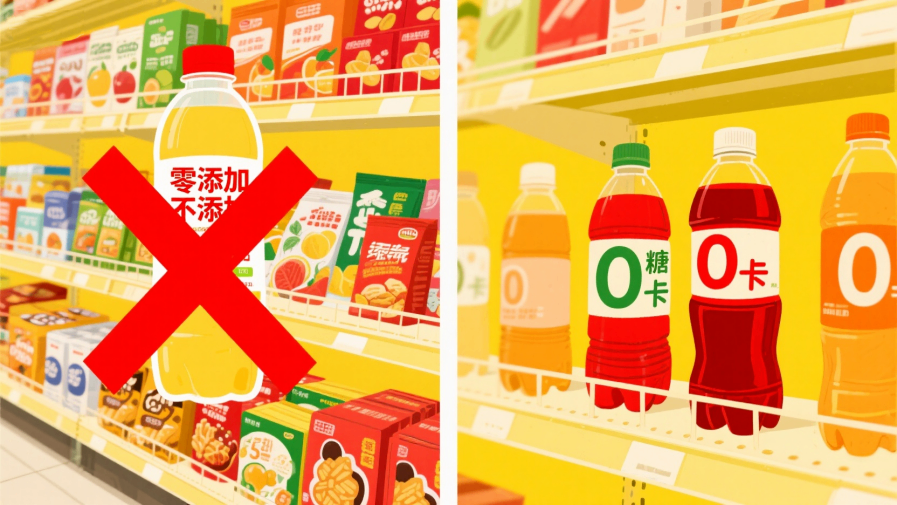 针对“强调没有添加某种配料”的标示语,新版GB 7718规定预包装食品不得使用“不添加”“零添加”及其同义词等词汇。待该标准于2027年3月16日正式实施后,“零添加”类的标示将被彻底禁止。“零添加”往往是商家为营销噱头而设计的文字游戏,“零添加”仅描述生产过程,但不排除原料可能含有某成分,如某果汁饮料宣称零添加糖,但其实含有来自水果本身的果糖,涉嫌混淆生产过程与终产品成分,可能对消费者造成误导。