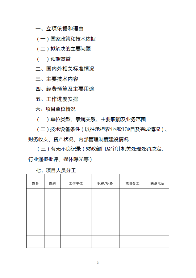 附件:2026年农业农村国家标准和行业标准制修订项目申请书